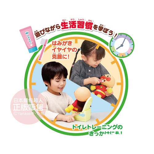 內含麵包超人玩偶、牙刷、牙膏、馬桶、睡衣、湯匙、餐盤、小桌子、用餐圍兜、水杯等道具,與麵包超人互動,從吃飯、刷牙、如廁、換衣服等玩法中,同時培養孩子學習刷牙及如廁訓練喔!趣味又好玩!有了麵包超人好朋友的陪伴,孩子也能開心學習生活好習慣! 影片:https://www.youtube.com/watch?v=_jWZY1gNsnE