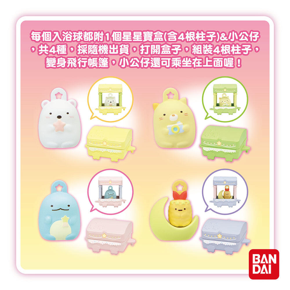 The size of the bathing ball is about 75mm! It is 1.5 times larger than before! It comes with a star treasure box & small dolls, a total of 4 types, randomly shipped! Flying tents can also be connected to each other, the more you connect, the more fun it is, just like in Walking in the starry sky! Super cute! Waiting for you to collect it!!