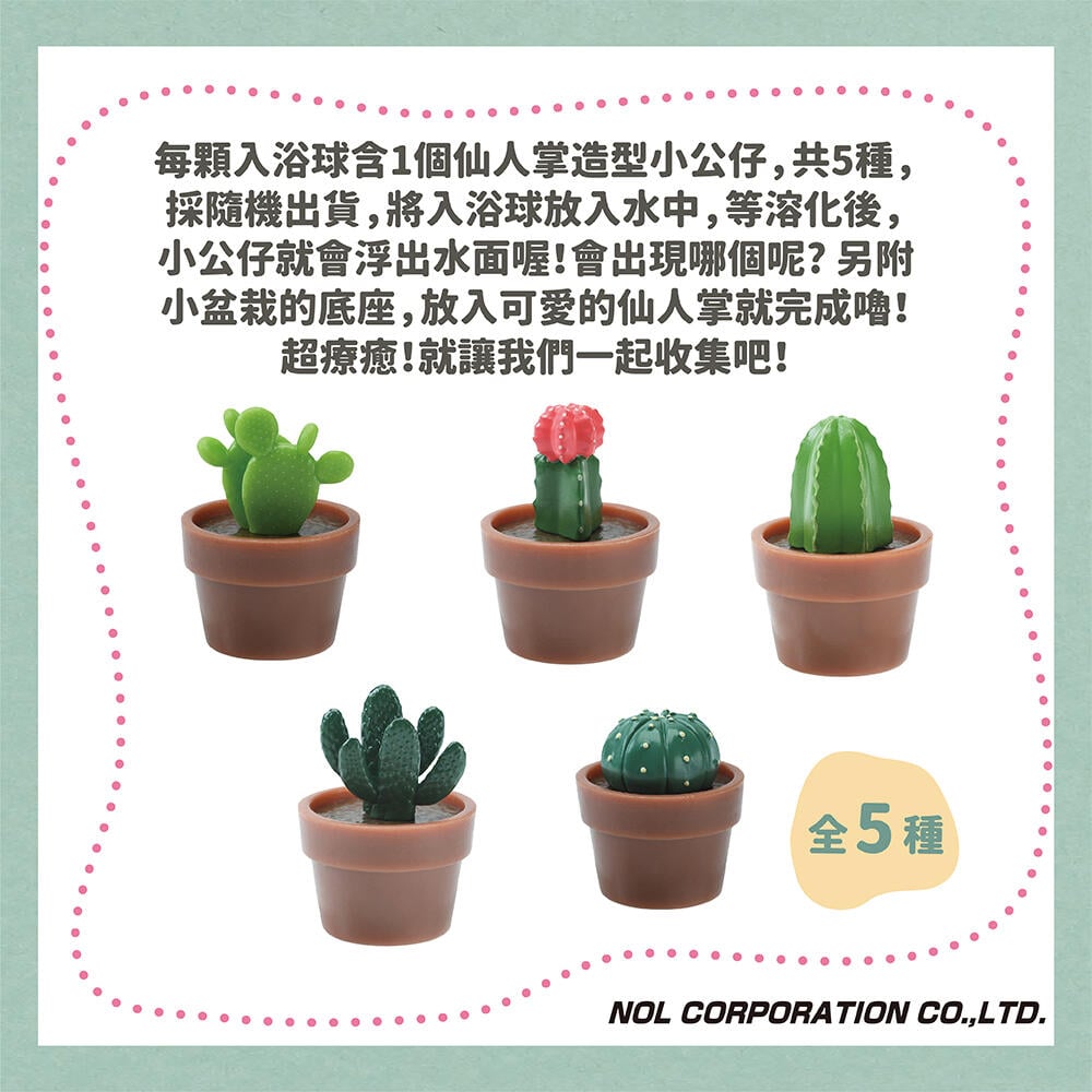 多肉植物「仙人掌盆栽造型入浴球」來囉! 內附1個仙人掌造型小公仔,共5種,採隨機出貨!另附小盆栽喔!可愛又療癒~等您來收集~