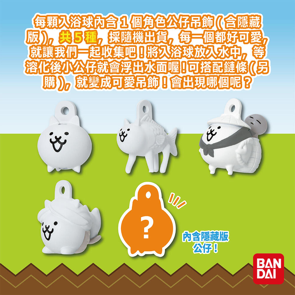 日本人氣手機遊戲:「貓咪大戰爭公仔吊飾入浴球」新上市!內附1個角色公仔吊飾(含隱藏版),共5種,超級可愛!採隨機出貨!等你來收集喔!